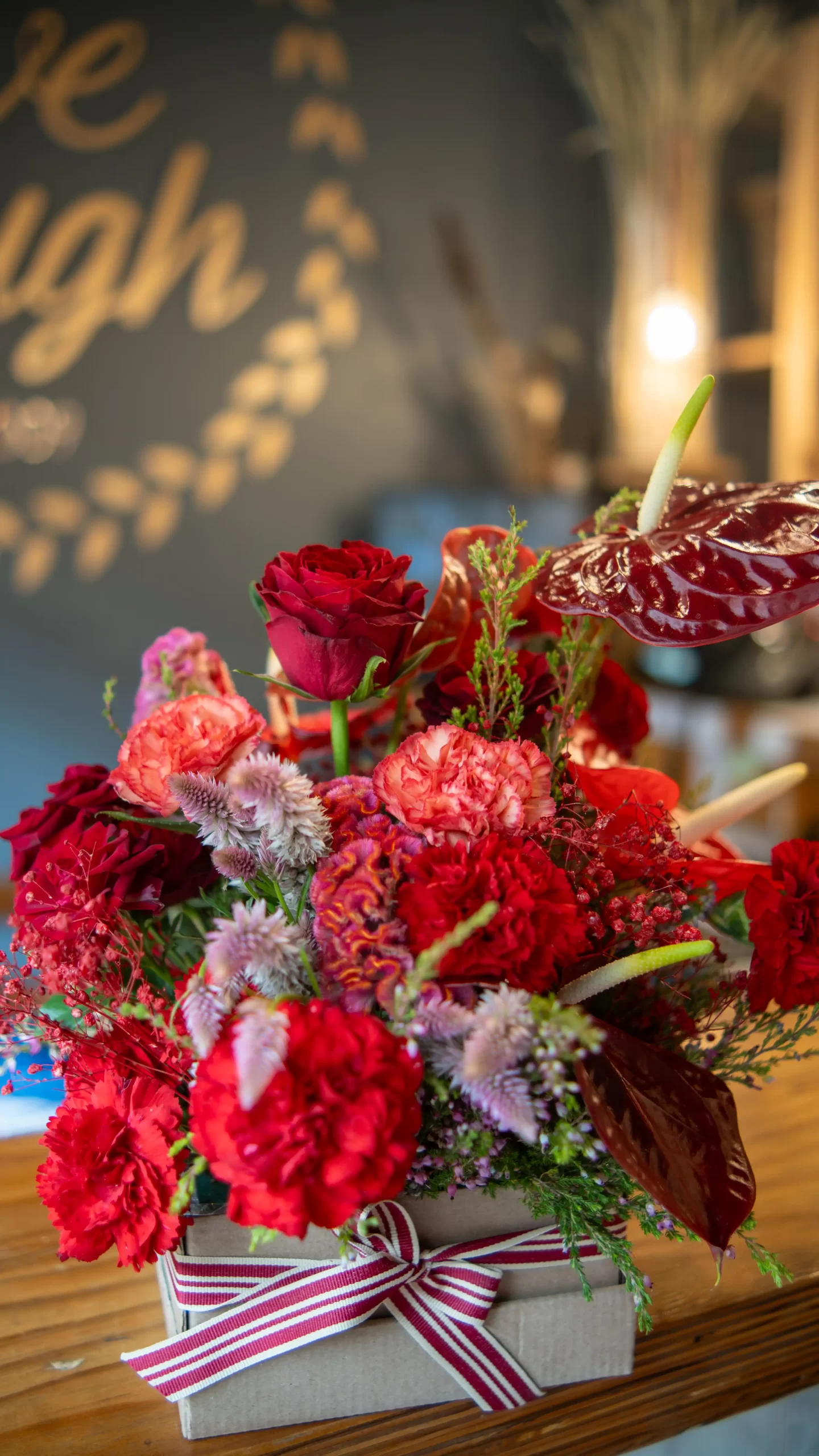 Natural box, filled with various shades of red botanicals.